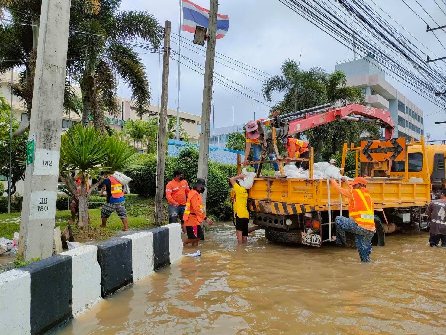 - ดำเนินการขุดลอกวัชพืชเปิดทางน้ำสองข้างทาง และเรียงกระสอบทรายซ่อมแซมจุดรั่วซึมที่เรียงไว้ และติดตั้งเครื่องสูบน้ำเพื่อเร่งระบายน้ำออกจากทางหลวงและบ้านเรือนประชาชน