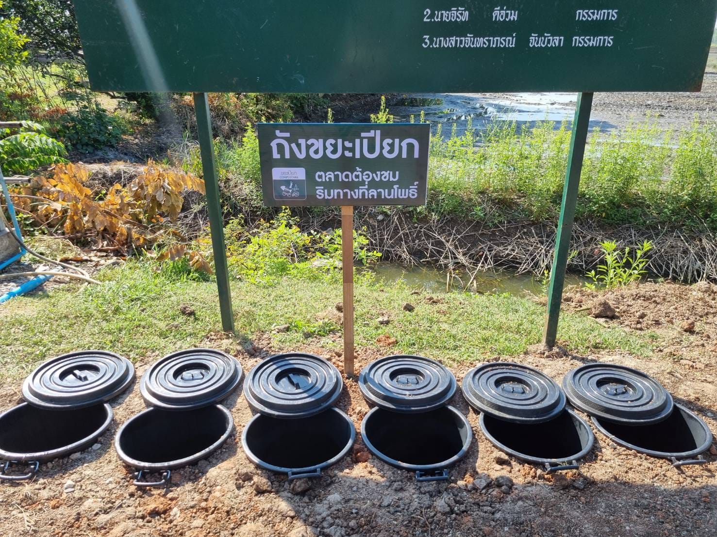 3. นำเศษอาหาร เศษผัก ผลไม้มาทิ้งในถังที่ฝังไว้ และปิดฝาให้มิดชิด