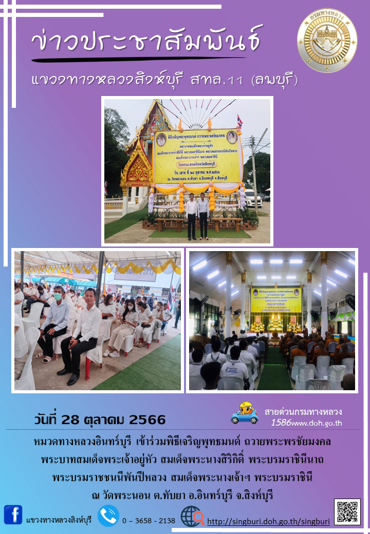 ประชาสัมพันธ์แขวงทางหลวงสิงห์บุรี วันที่ 28 ตุลาคม 2566