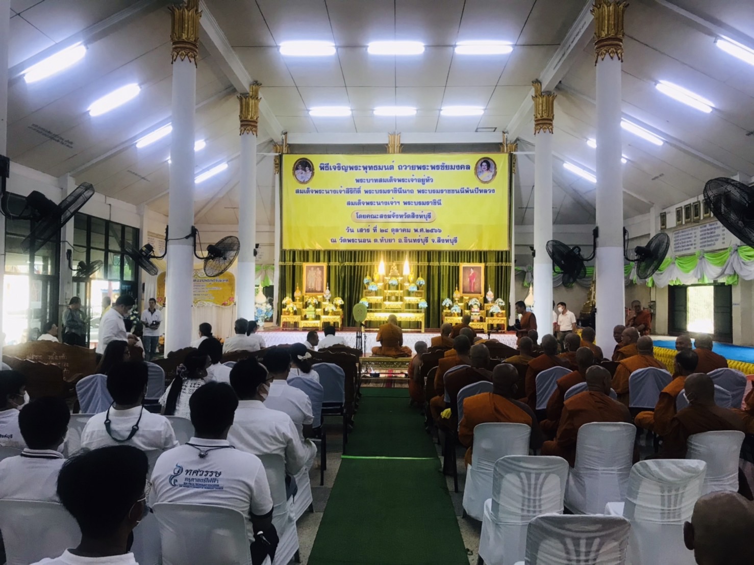 แขวงทางหลวงสิงห์บุรี โดยนายกานต์ สินสืบผล ผู้อำนวยการแขวงทางหลวง มอบหมายให้หมวดทางหลวงอินทร์บุรี เข้าร่วมพิธีเจริญพุทธมนต์ ถวายพระพรชัยมงคล พระบาทสมเด็จพระเจ้าอยู่หัว สมเด็จพระนางสิริกิติ์ พระบรมราชชนนีพันปีหลวง สมเด็จพระนางเจ้าฯ พระบรมราชินี ณ วัดพระนอน ต.ทับยา อ.อินทร์บุรี จ.สิงห์บุรี