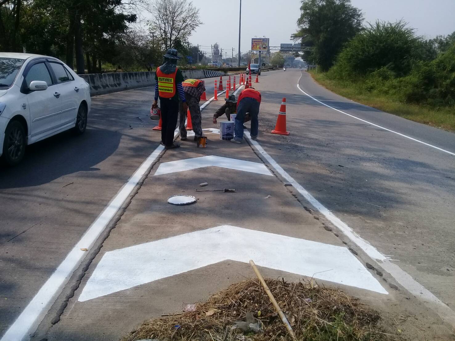 ดำเนินการตีเส้นจราจรบนผิวทาง ทางหลวงหมายเลข 32