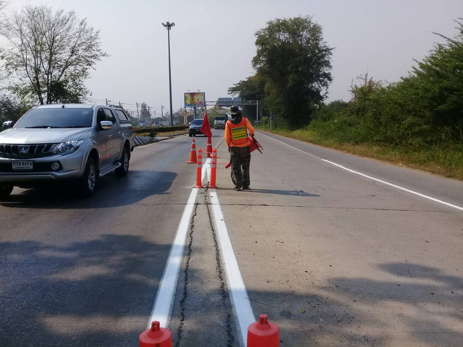 ดำเนินการตีเส้นจราจรบนผิวทาง บนทางหลวงหมายเลข 32