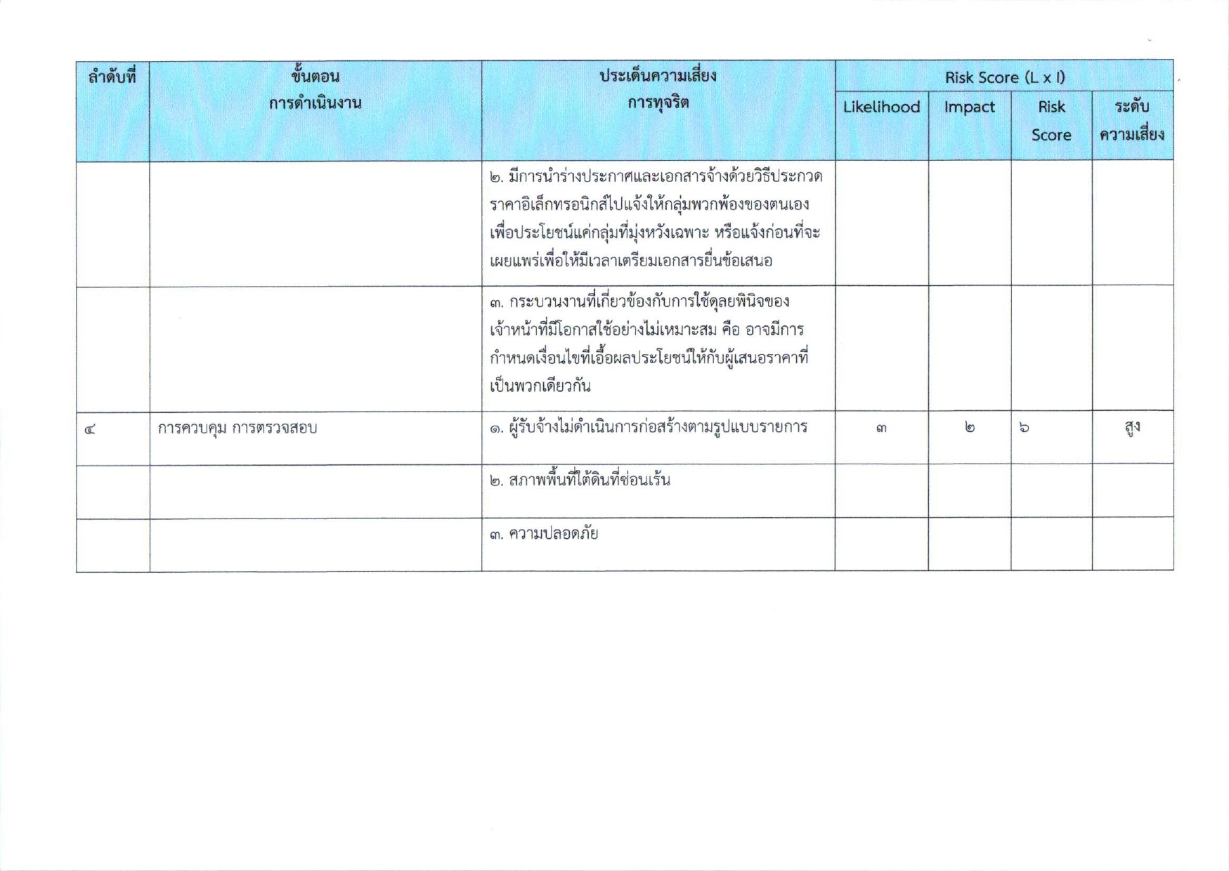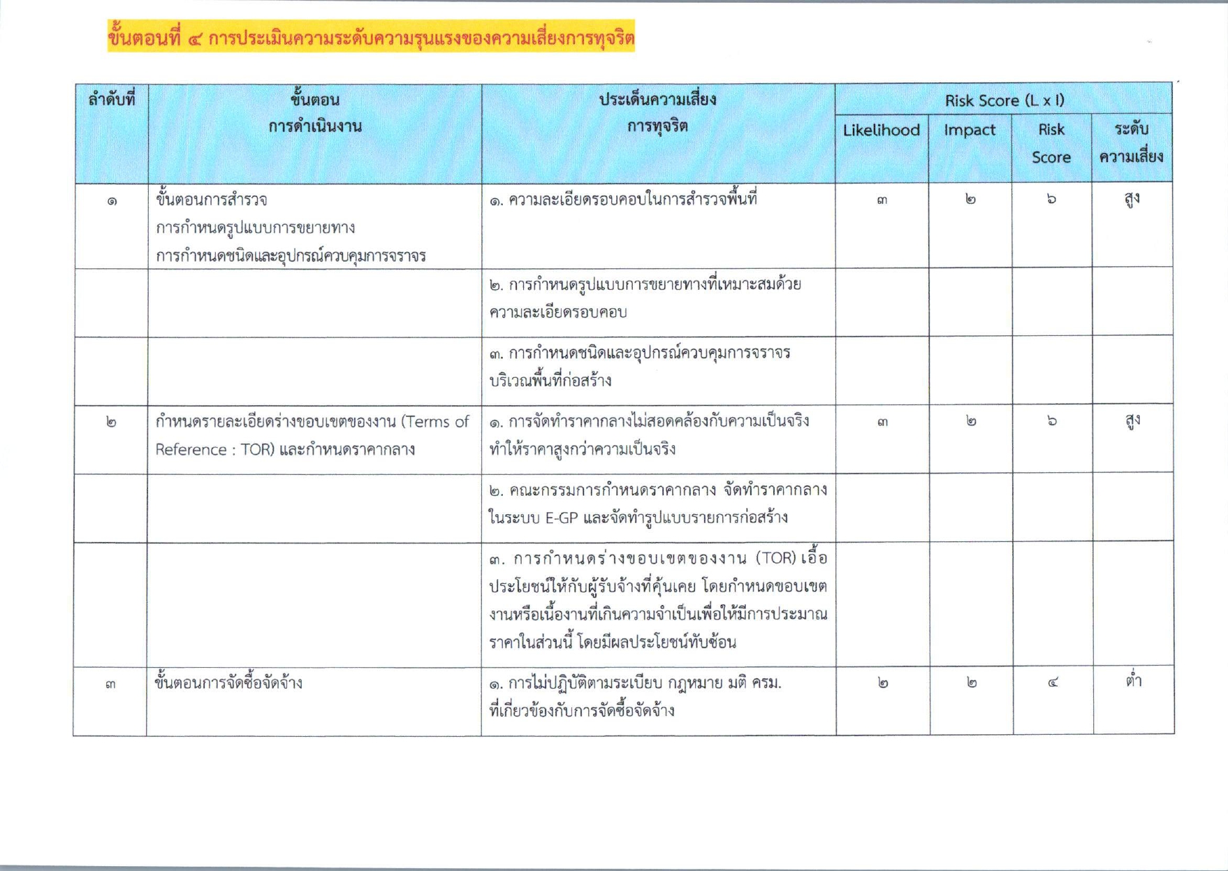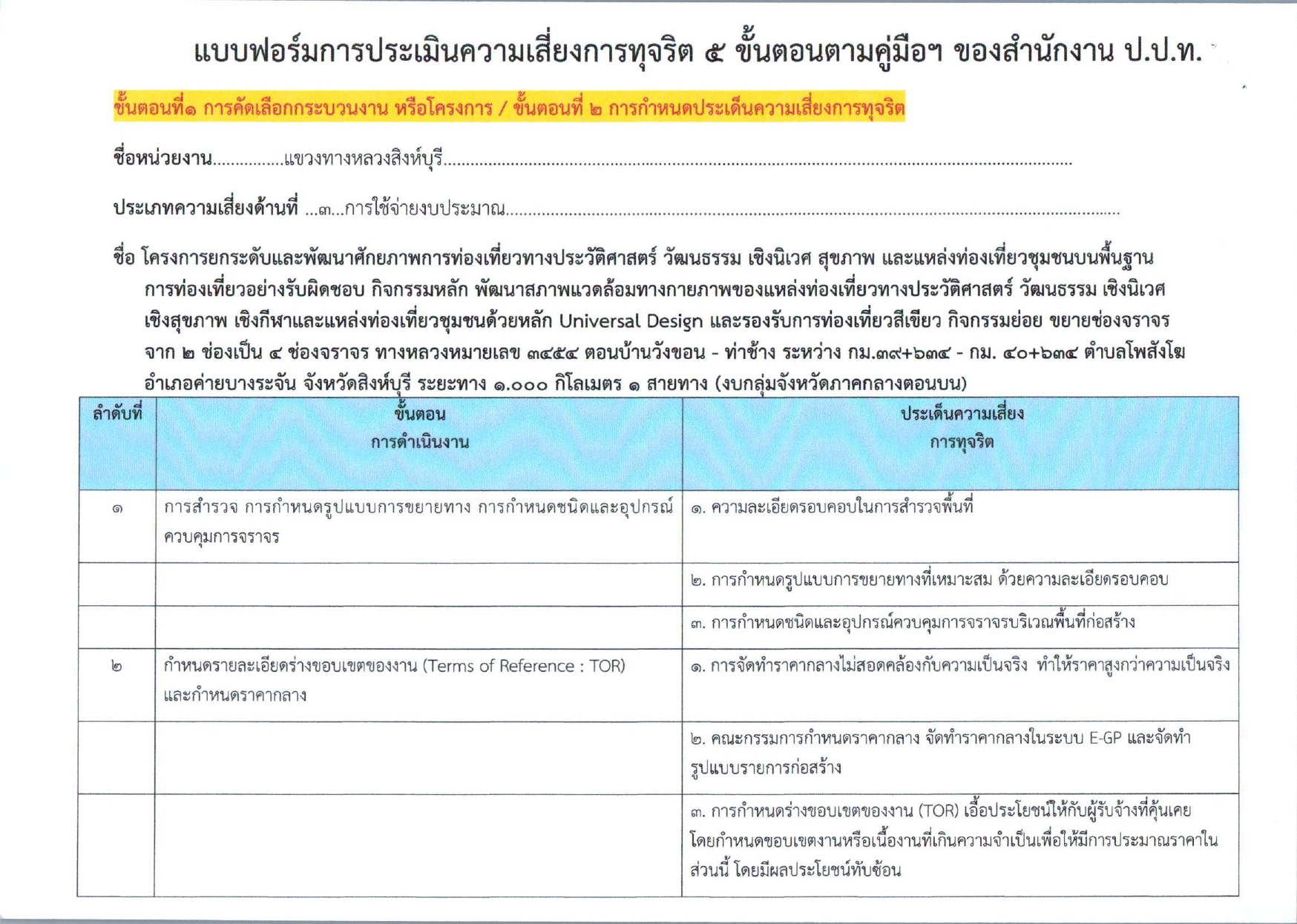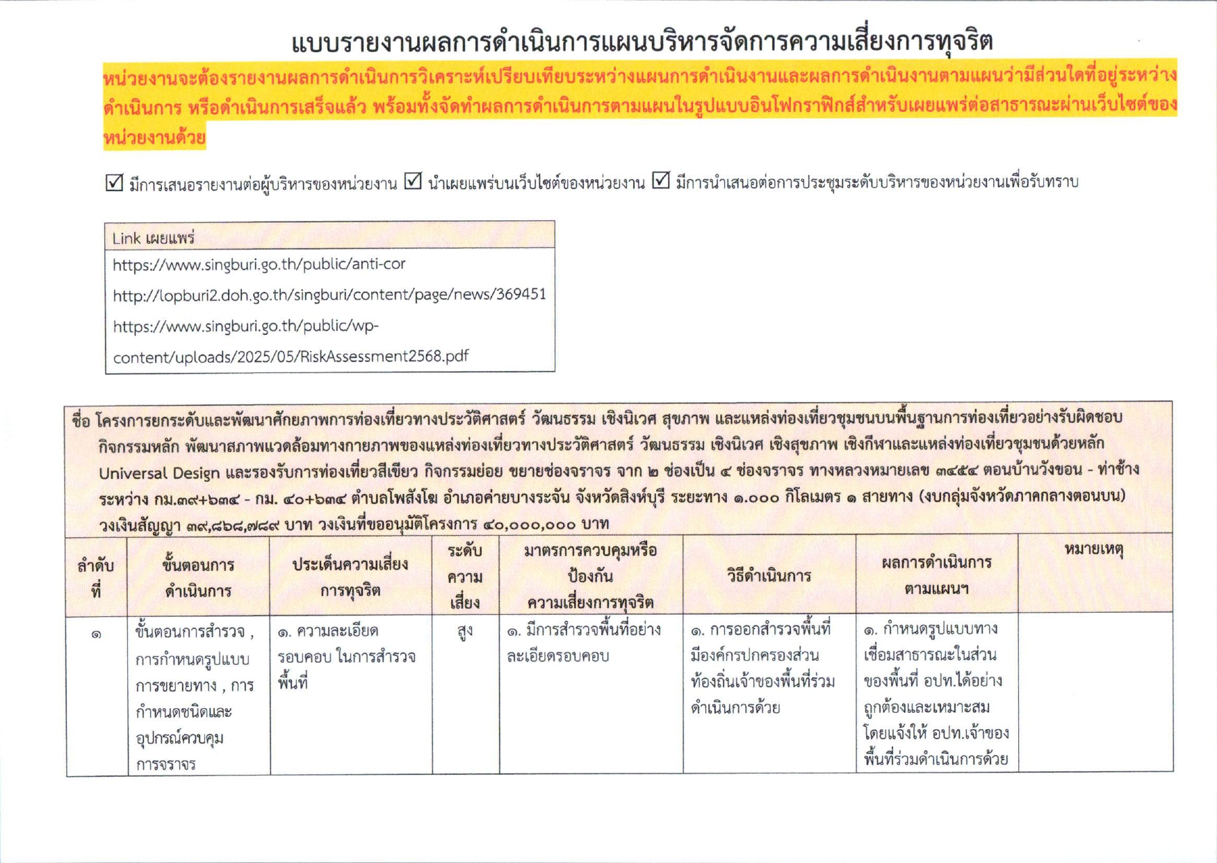 แบบรายงานผลการดำเนินการแผนบริการจัดการความเสี่ยงการทุจริต ประจำปีงบประมาณ พ.ศ.๒๕๖๘