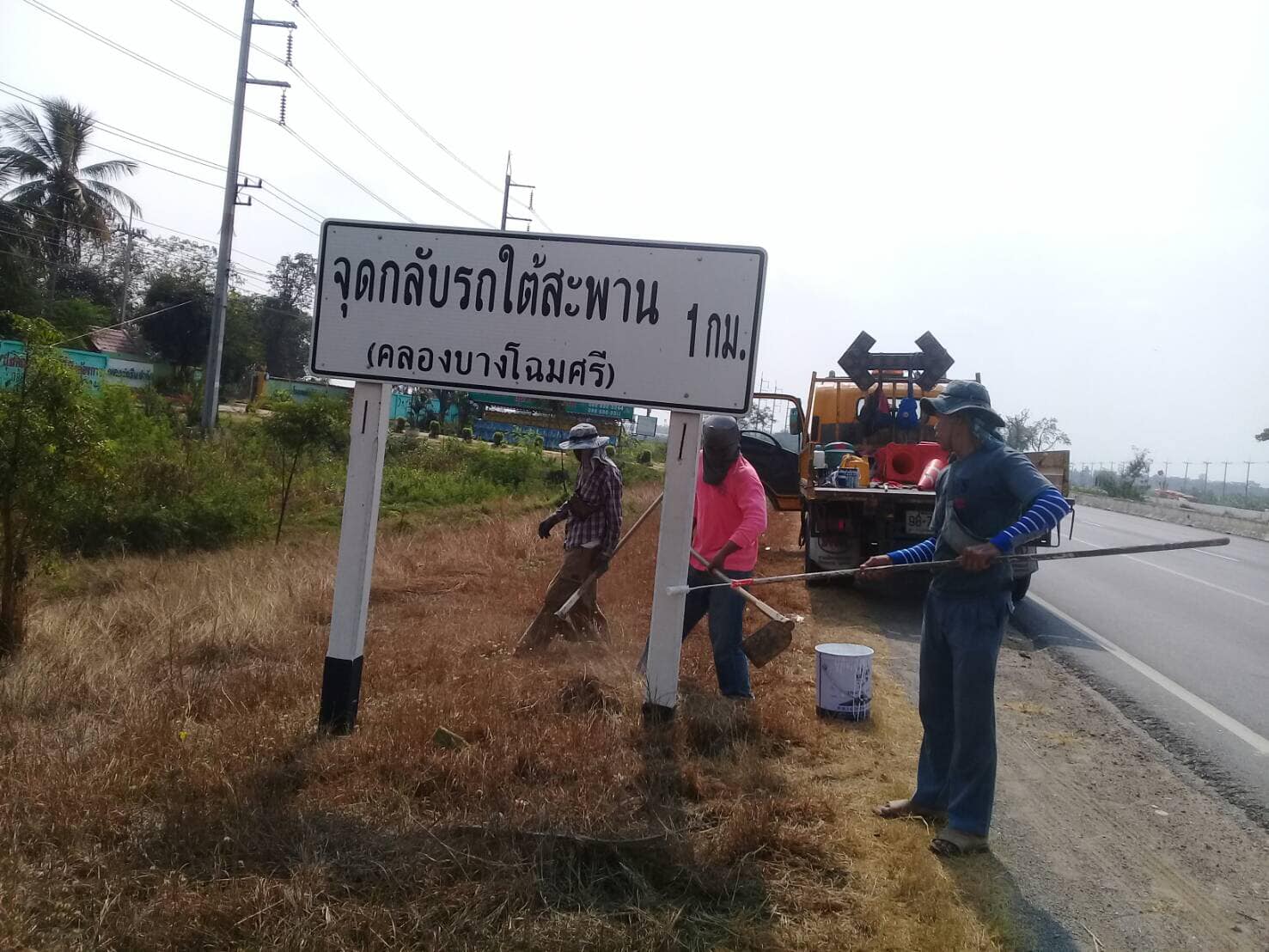 ดำเนินการทำความสะอาดและทาสีป้ายจราจร ทางหลวงหมายเลข 32
