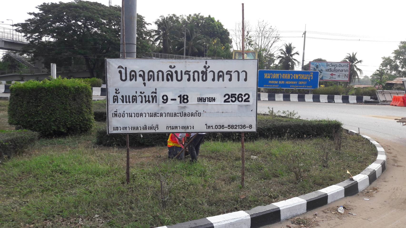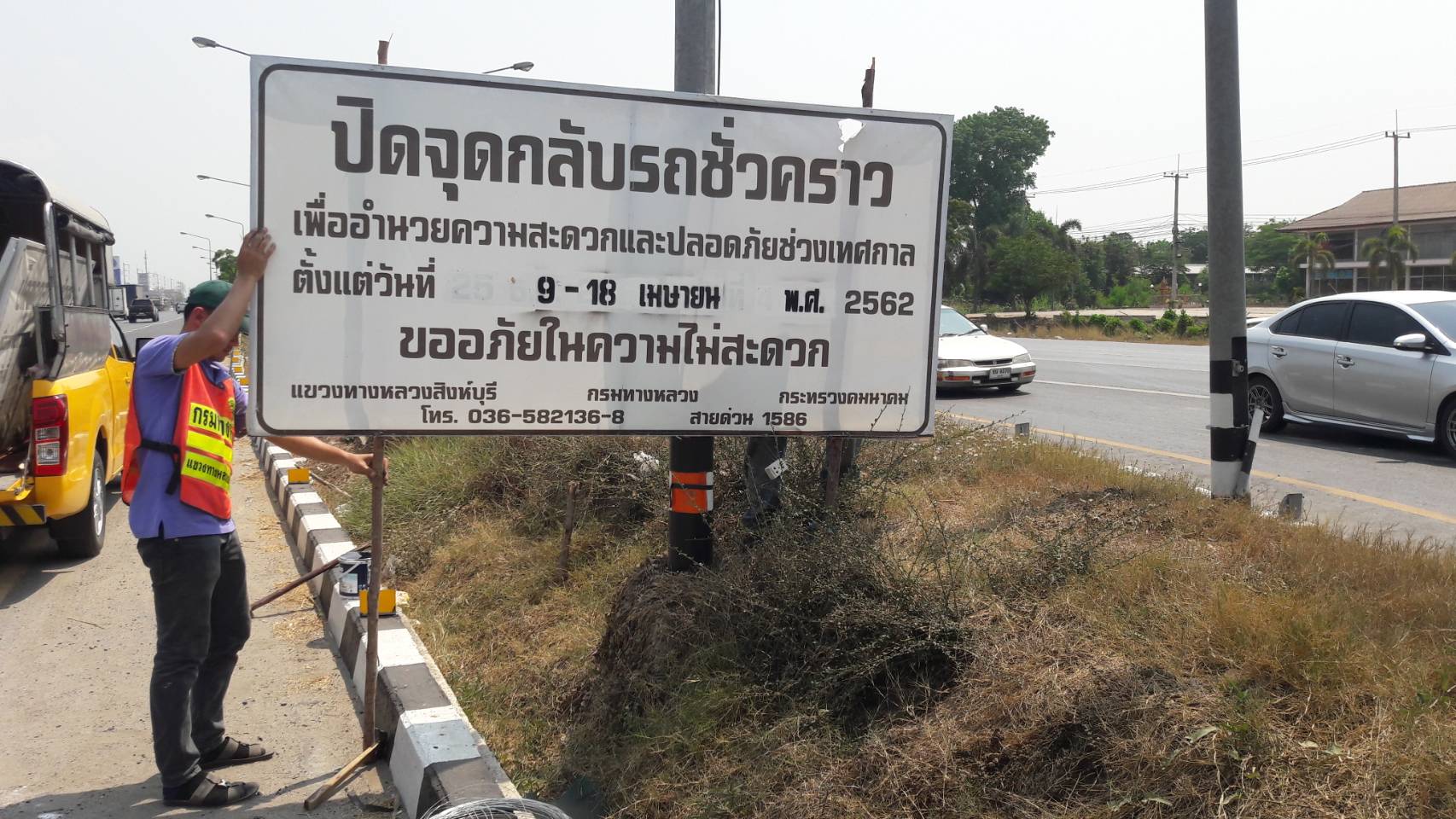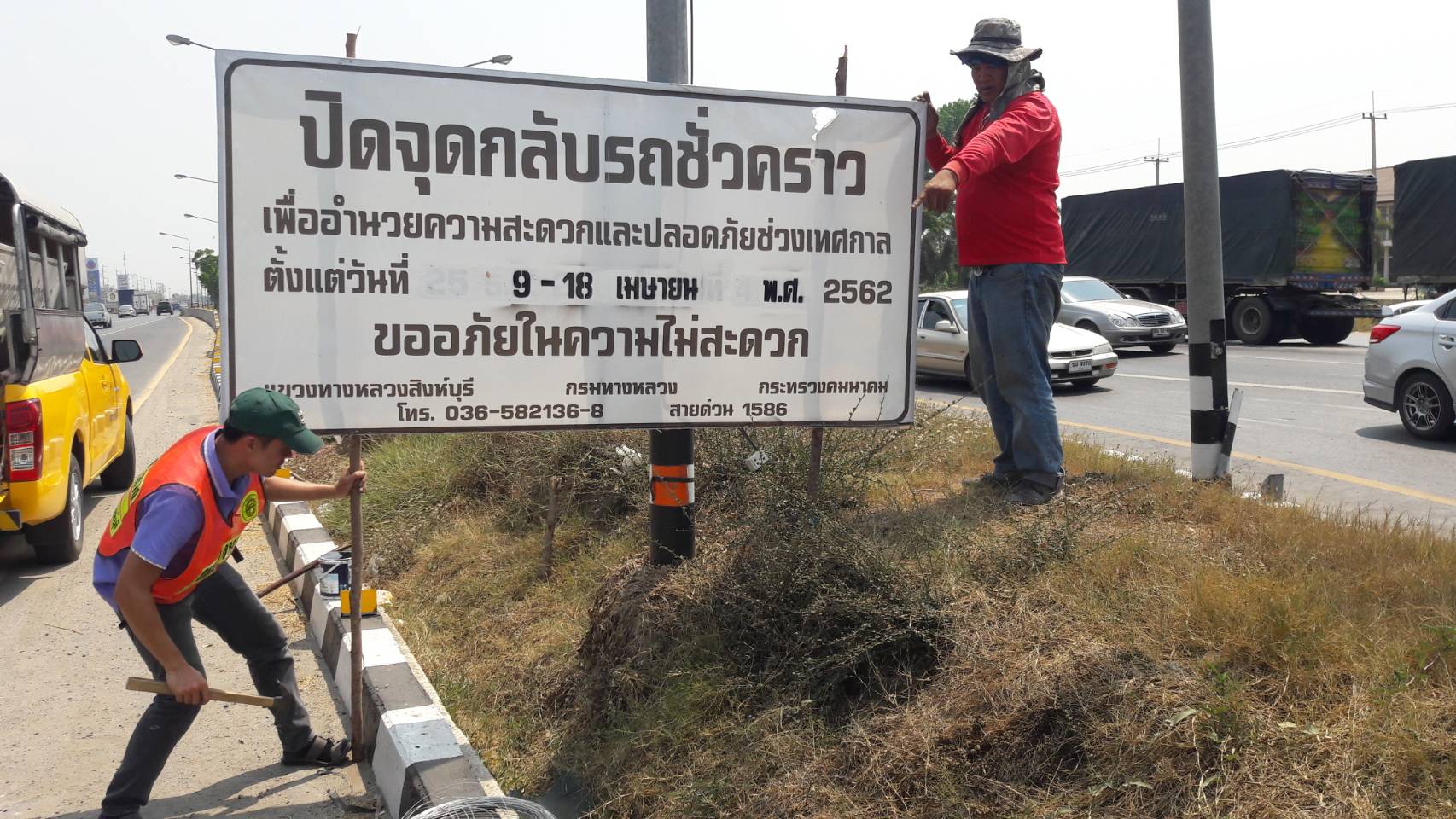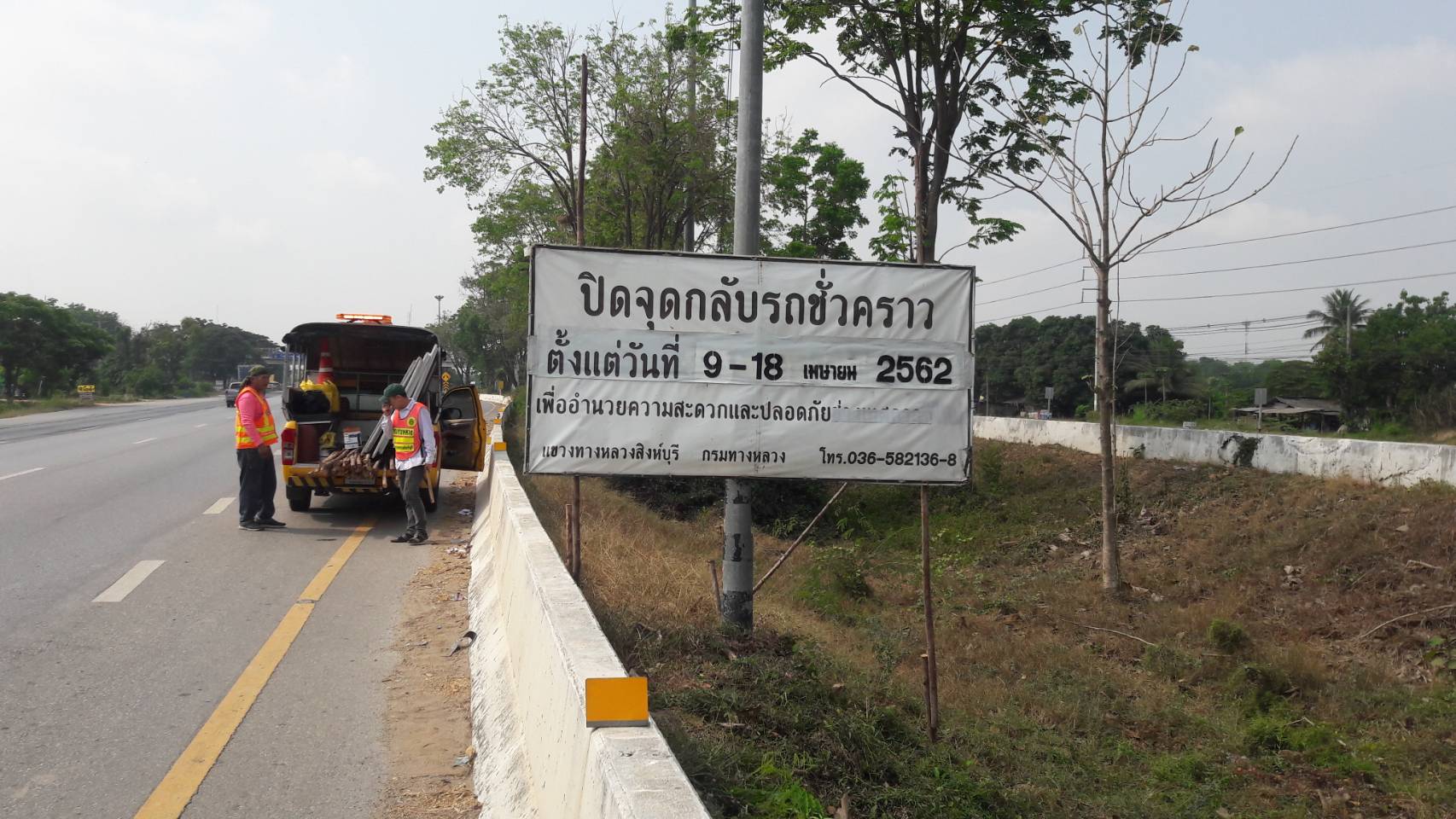 ติดตั้งป้ายประชาสัมพันธ์ ปิดจุดกลับรถชั่วคราว บนทางหลวงหมายเลข 32