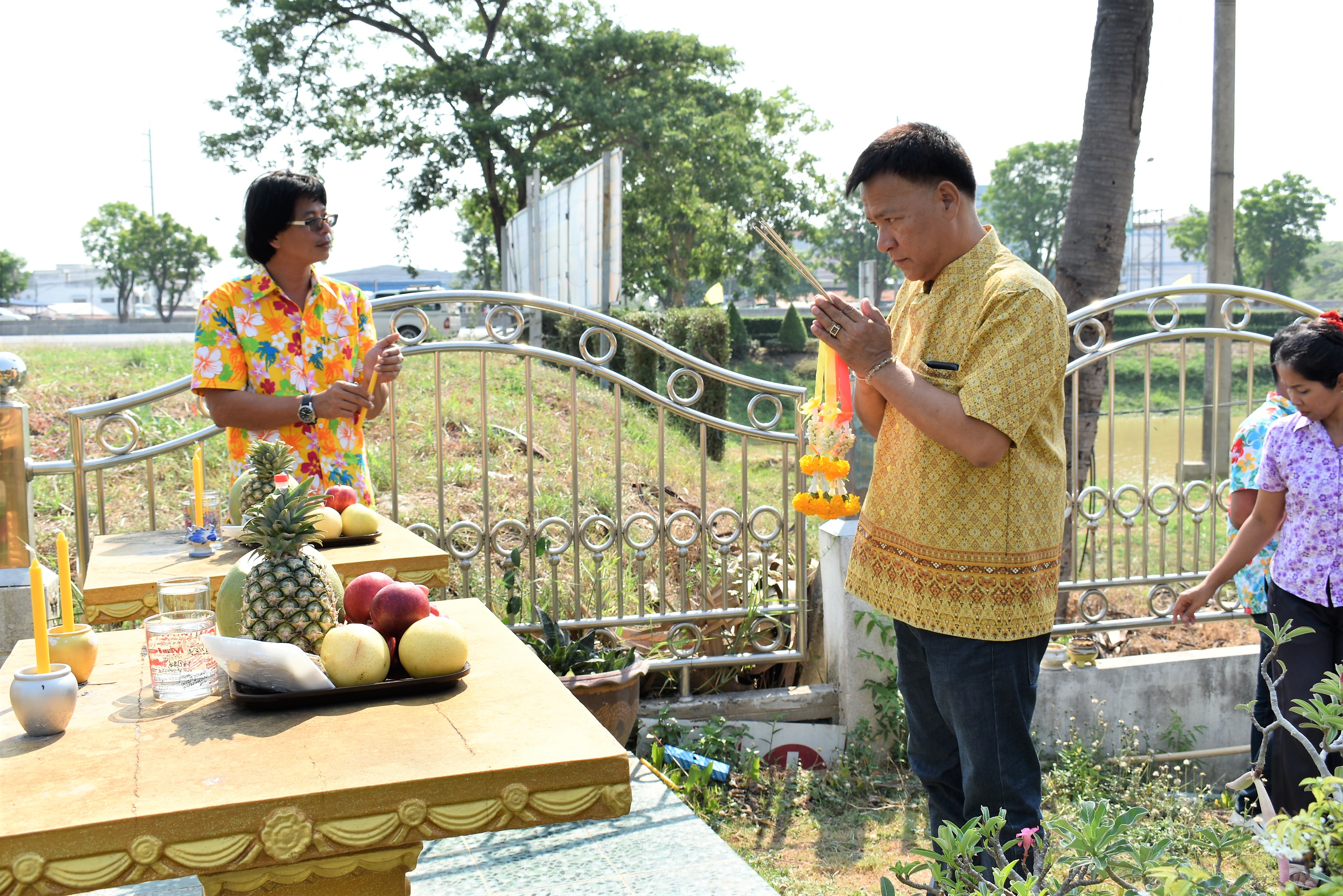 นำข้าราชการ และเจ้าหน้าที่ในสังกัด ร่วมทำบุญสงกรานต์ถวายภัตตาหารเช้าแด่พระสงฆ์ จำนวน 9 รูป